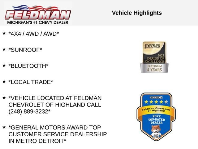 *4X4 / 4WD / AWD*, *SUNROOF*, *Bluetooth®*, *LOCAL TRADE*, *VEHICLE LOCATED AT FELDMAN CHEVROLET OF HIGHLAND CALL (248) 889-3232*, *GENERAL MOTORS AWARD TOP CUSTOMER SERVICE DEALERSHIP IN METRO DETROIT*, AWD, Ash Cloth.