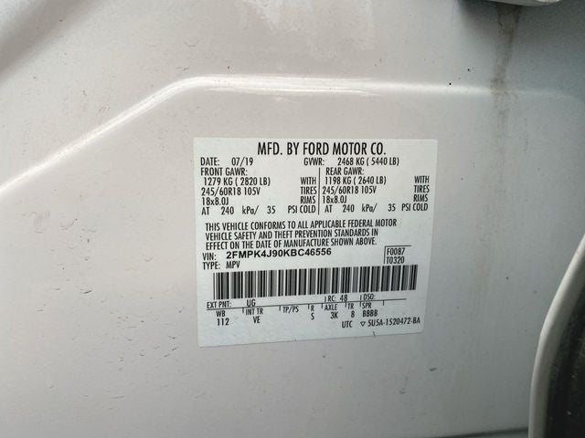 2019 Ford Edge SEL AWD EcoBoost 2.0L I4 GTDi DOHC Turbocharged VCT