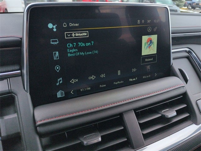 Sterling Gray Metallic 4WD 10-Speed Automatic with Overdrive EcoTec3 5.3L V8 4X4 / 4WD / AWD, 4WD, Jet Black/Victory Red Leather, 1st & 2nd Row Color-Keyed Carpeted Floor Mats, 2nd Row Pwr Release 60/40 Split-Folding Bench Seat, 3rd Row 60/40 Power-Folding Split-Bench Seat, Adaptive Cruise Control, Auto-Dimming Inside Rear-View Mirror, Bose 9-Speaker Stereo Audio System Feature, Bright Front & Rear Door Sill Plates, Color-Keyed Carpeting Floor Covering, Driver & Front Outboard Passenger Airbags, Driver Alert Package, Enhanced Automatic Emergency Braking, Enhanced Driver Information Center, Floor Console w/Storage Area, Hands-Free Rear Power Programmable Liftgate, HD Surround Vision, Heated 2nd Row Outboard Seats, Heated Steering Wheel, Lane Change Alert w/Side Blind Zone Alert, LED Daytime Running Lamps, Luxury Package, Memory Settings, Memory Settings for Driver, Outside Heated Power-Adjustable Mirrors, Power Tilt & Telescopic Steering Column, Preferred Equipment Group 1SP, Rear Cross Traffic Alert, Rear Pedestrian Alert, Remote Start, SiriusXM w/360L, Universal Home Remote, Wireless Charging, Wrapped Steering Wheel.